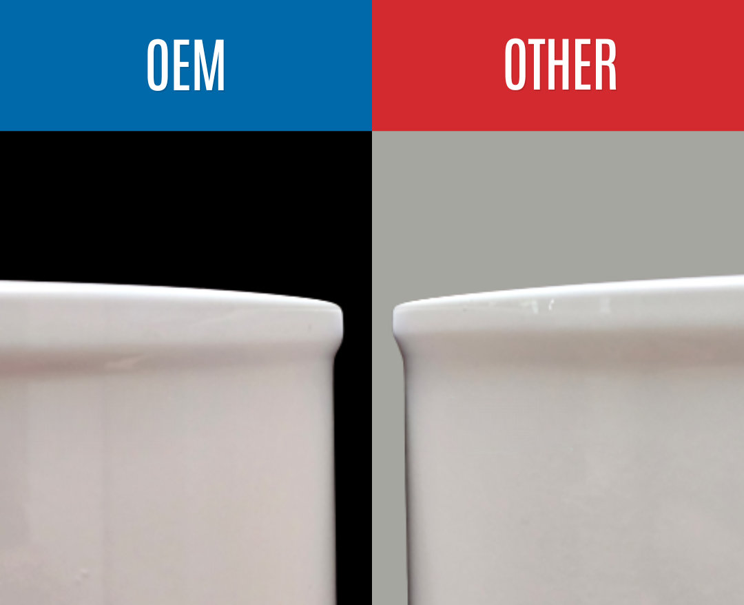 - FS-Elliott glue application is neat; non-OEM glue is sloppy.