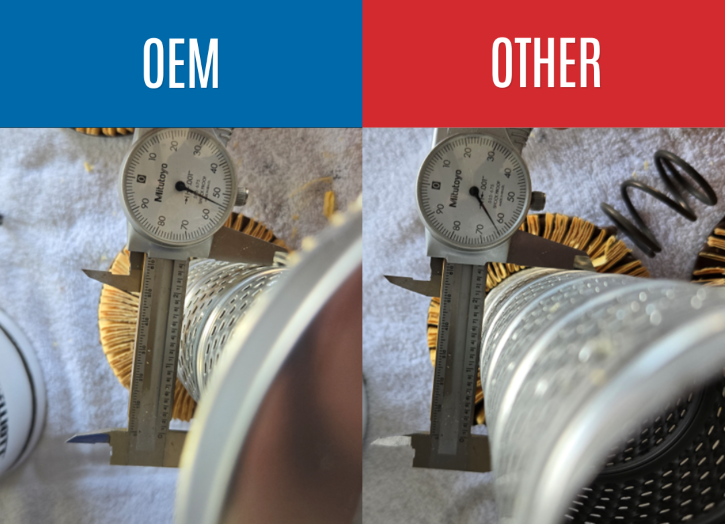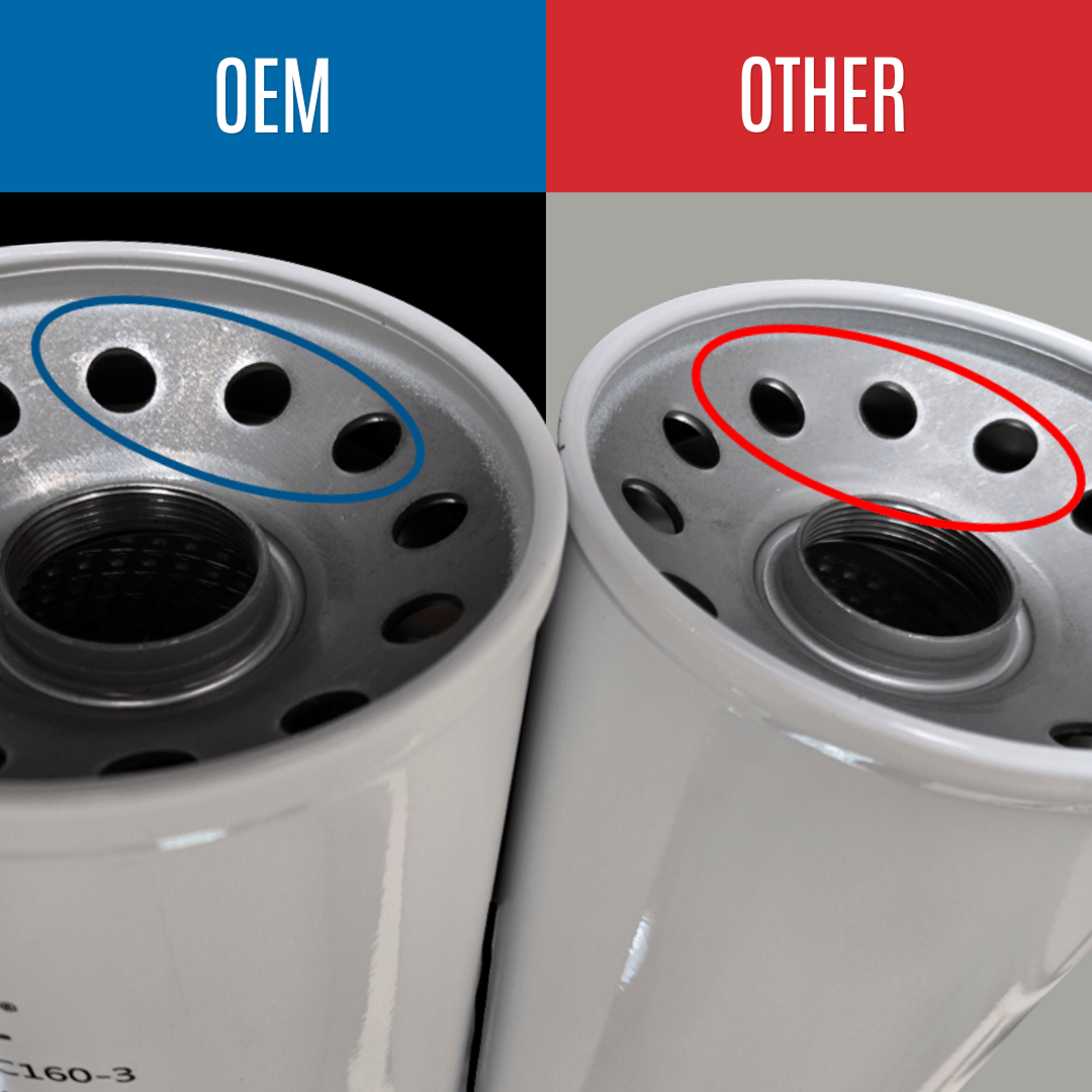 In-house comparison of FS-Elliott OEM oil filter (P3516C160-3) vs. one 3rd party ‘compatible’ filter.