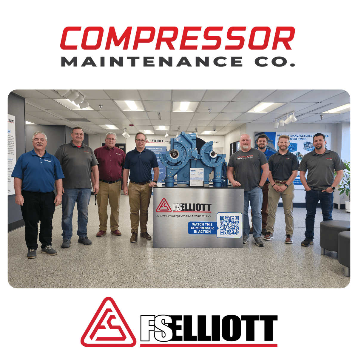 Export, PA - April 20, 2026, FS-Elliott Co., LLC, a leading manufacturer of oil-free, centrifugal air and gas compressors, is proud to announce Compressor Maintenance Co. as its newest authorized Channel Partner in the United States. Based in Westminster, MD, Compressor Maintenance Co. will represent FS-Elliott across Delaware and designated counties within Maryland and Pennsylvania.